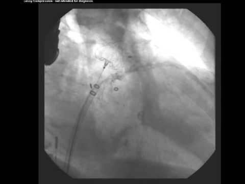 Video 16.9 Wiring of the left upper pulmonary vein and introduction of the pigtail catheter.
