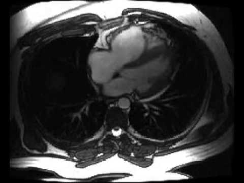 Video 11.2 Axial MRI steady-state, free precession cine sequence showing right ventricular dilation and basal dyskinesis.